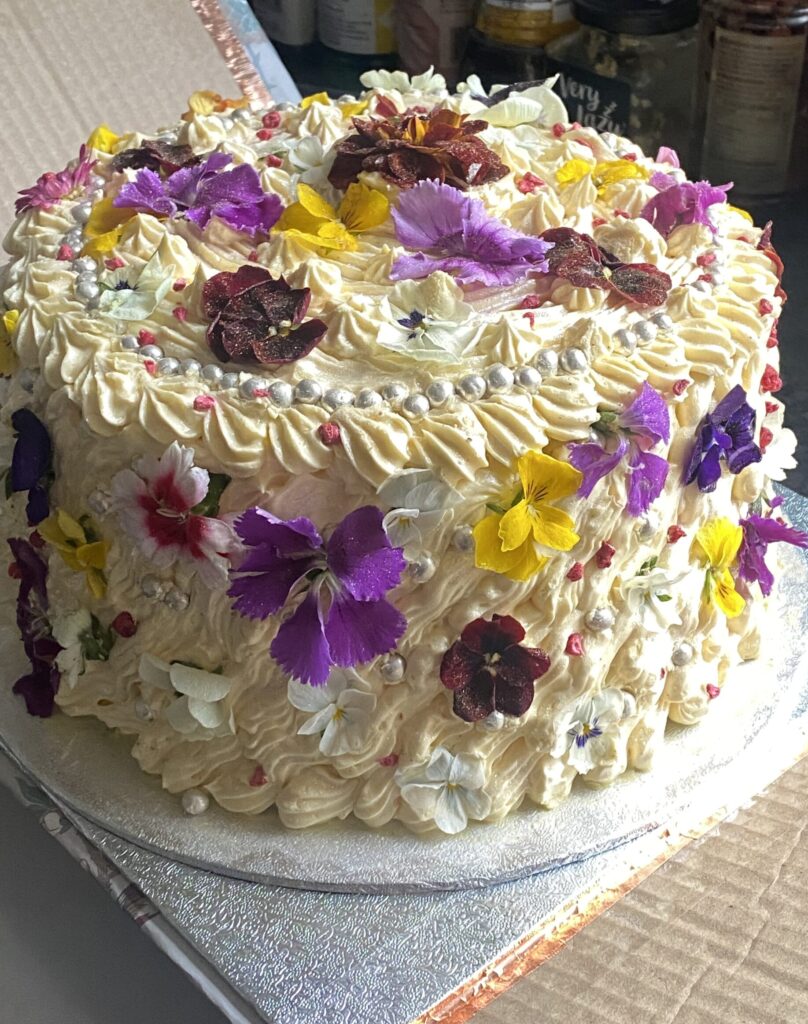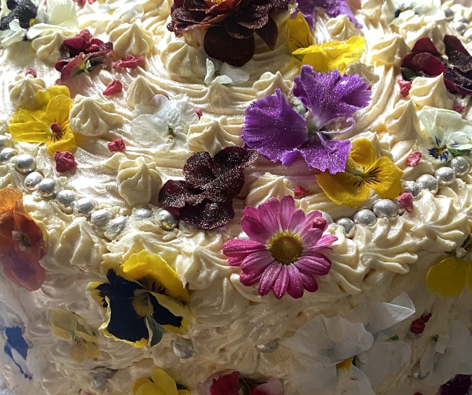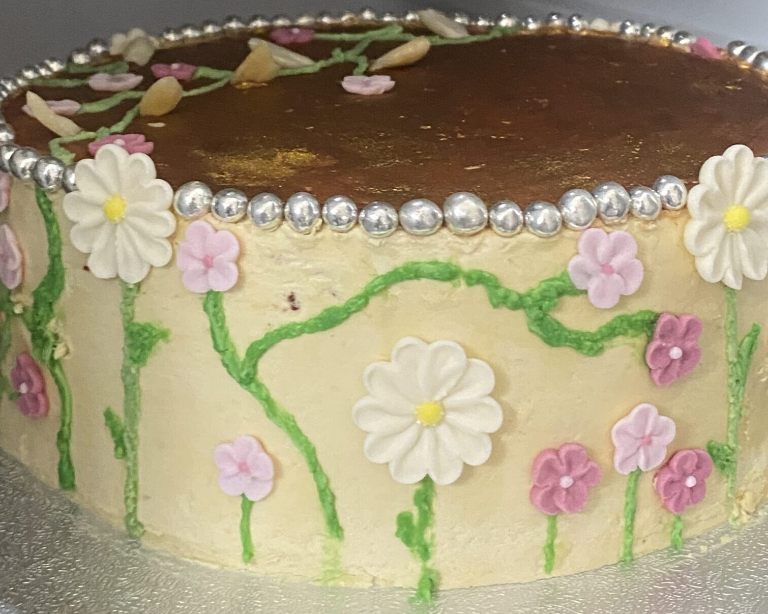 GOLDEN FLORAL TORTA CAPRESE WITH EARL GRAY ICING