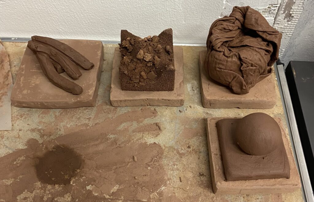 Clay and Plaster studies exploration of textures, moulding and limits of materials when submitted to differing environments