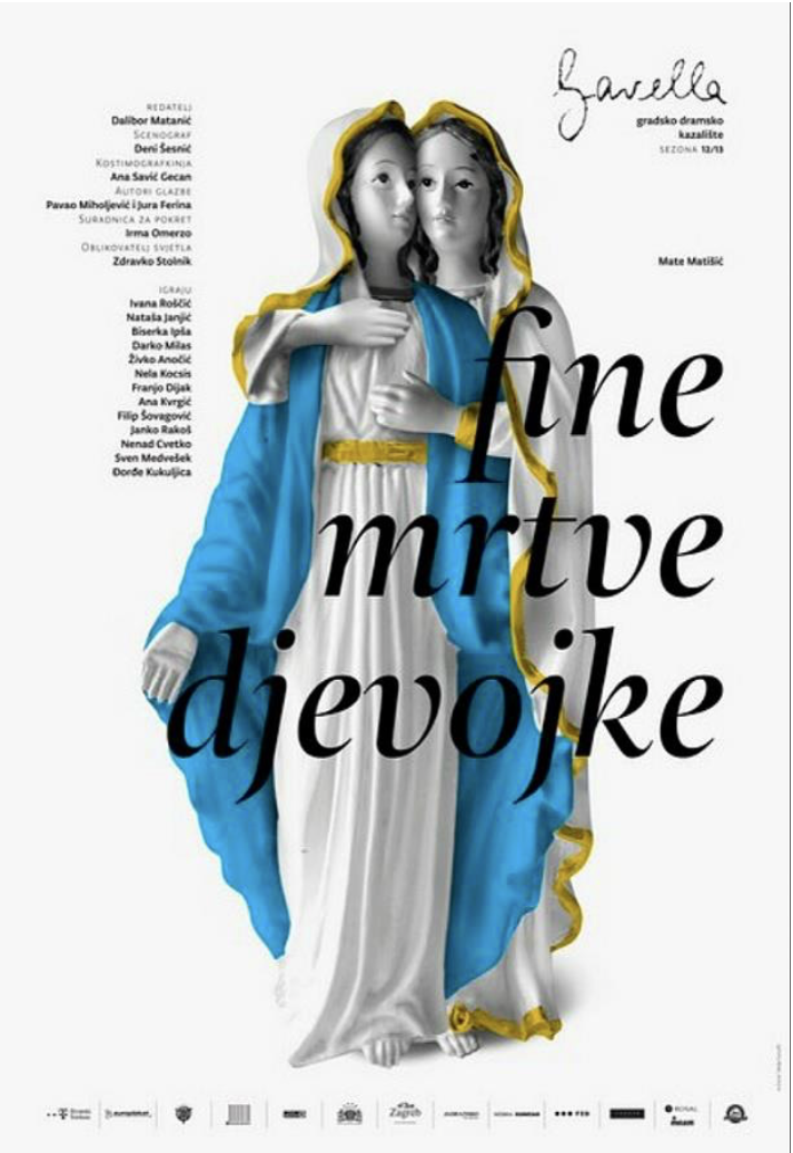 “Recently two small porcelain figurines depicted on a theatre poster promoting a lesbian play “Fine, Death Girls” deeply upset Croatian society, both Catholics and Muslims, believers and non-believers, but also politicians. The image of two holly Virgin Maries, lovingly embracing one another across the shoulder, in shining blue-and-white porcelain – that was too much of a stress for religious and political leaders.”. (GREIF, 2013)