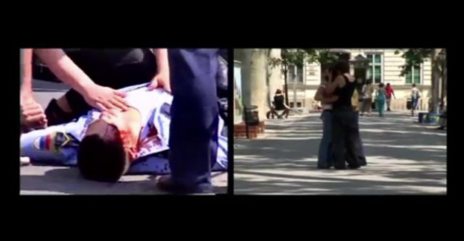 Igor Grubić said in an interview that his initial idea for “east side story” was to execute interviews with the protagonists of the film. After examining the footage, he talks about a recurring sense of sickness in his gut and disbelief that people could be so brutally cruel to one another just because of their differences. He continued by saying that because of being continuously shocked by this fact, he decided to go and explore this bodily feeling that arose in him. And so, he decided to work with dancers in a public space, who would in a symbolic way evaluate the locations where these gruesome events happened. (Igor Grubić in an interview done for a Croatian newspaper and media company in 2010) In the following part, I will explain and analyse this artwork as well as mentioning some ideas mentioned in the paragraphs above and applying them to this work.